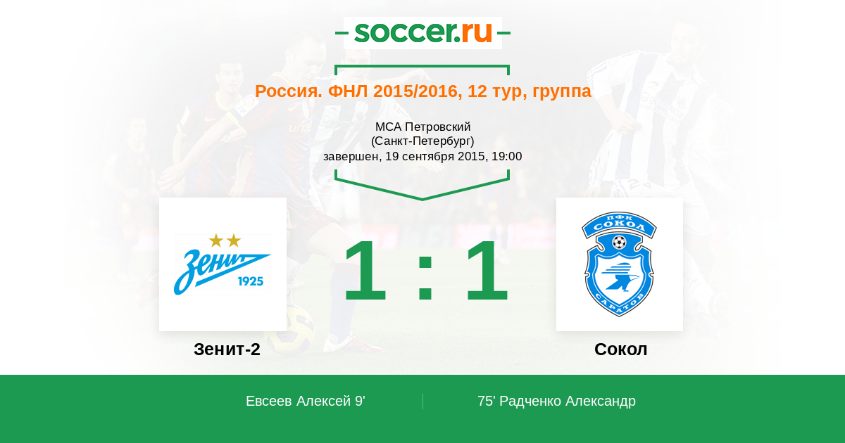 Зенит-2 - Сокол: обзор матча 19 сентября 2015