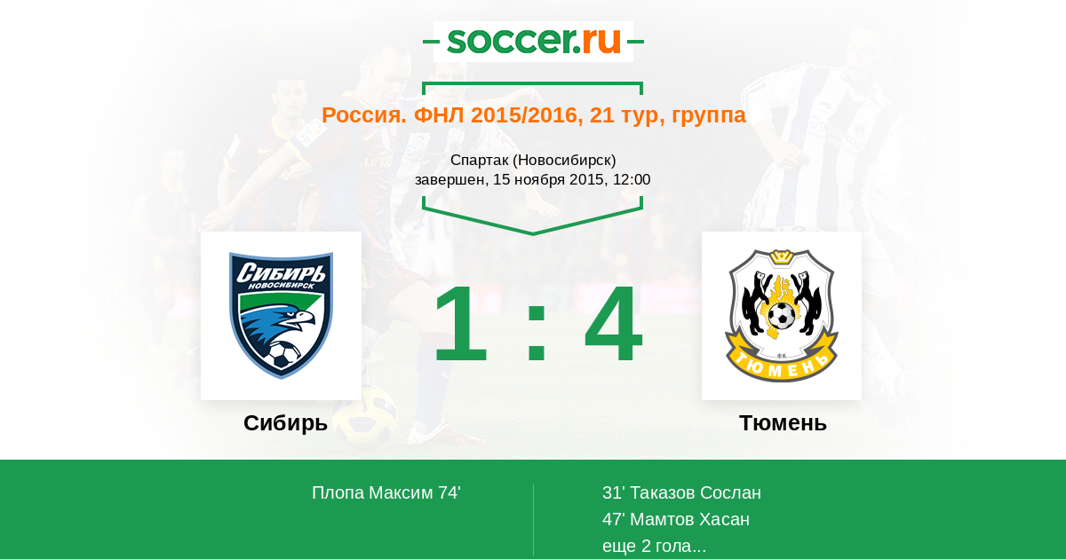 Сибирь - Тюмень: обзор матча 15 ноября 2015