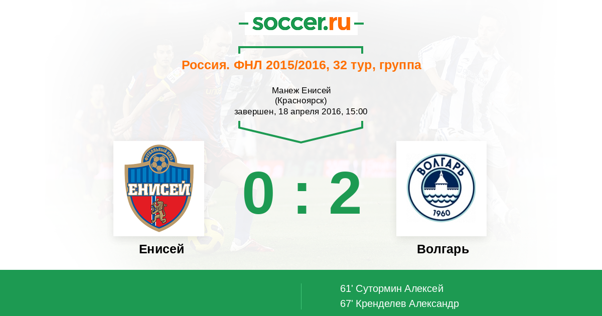 Енисей - Волгарь: обзор матча 18 апреля 2016