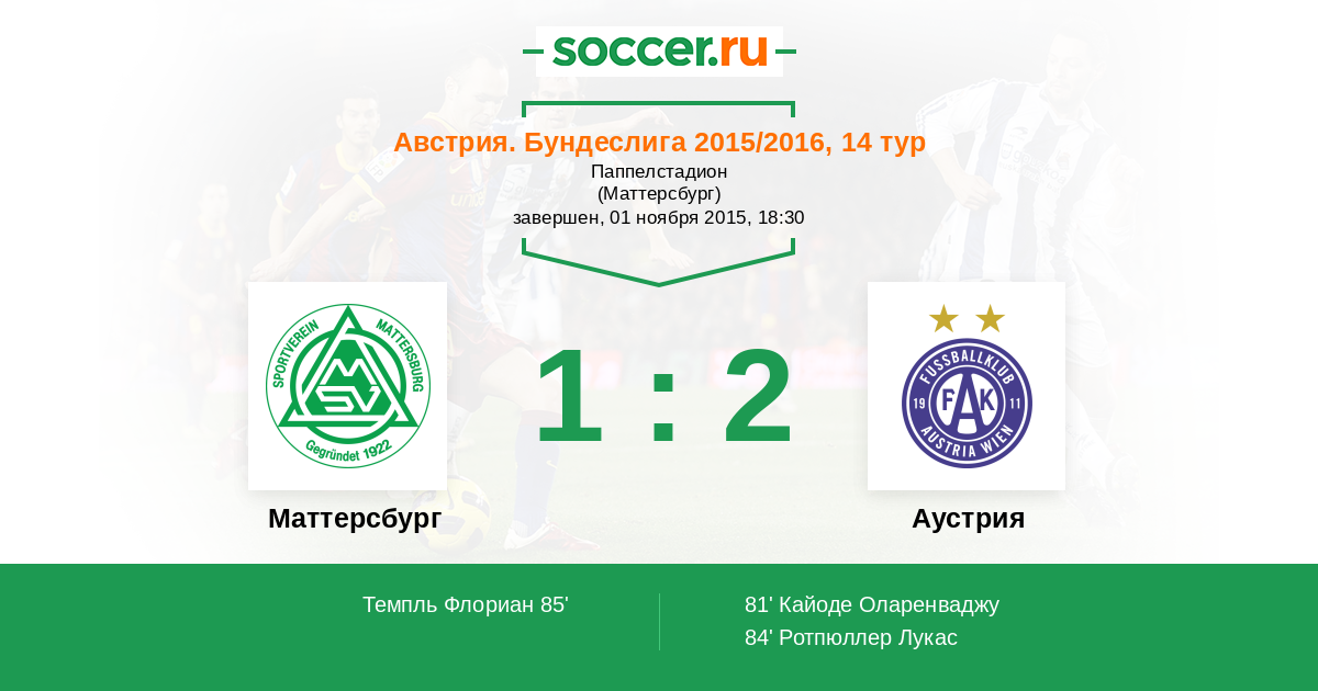 Маттерсбург - Аустрия: обзор матча 1 ноября 2015
