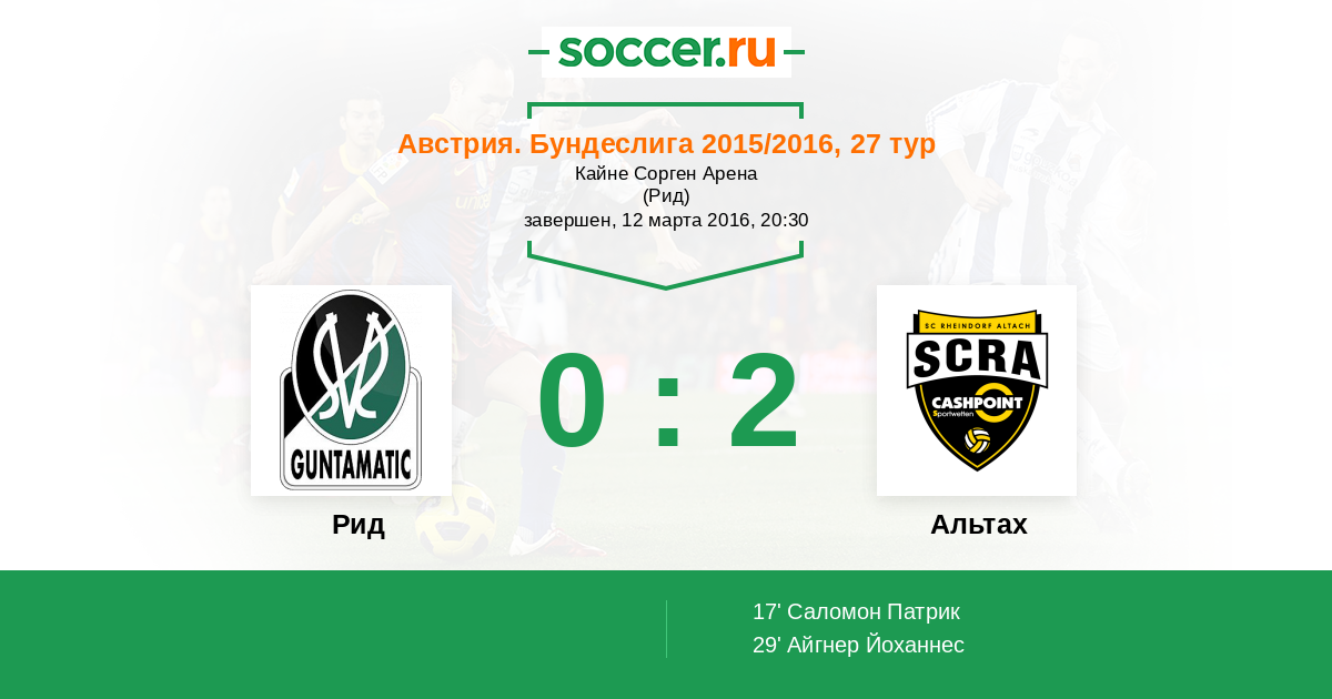 Рид - Альтах: обзор матча 12 марта 2016