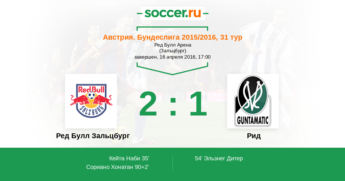 Ред Булл Зальцбург - Рид: обзор матча 16 апреля 2016
