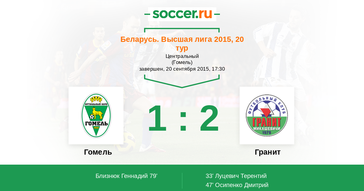 Гомель - Гранит: обзор матча 20 сентября 2015