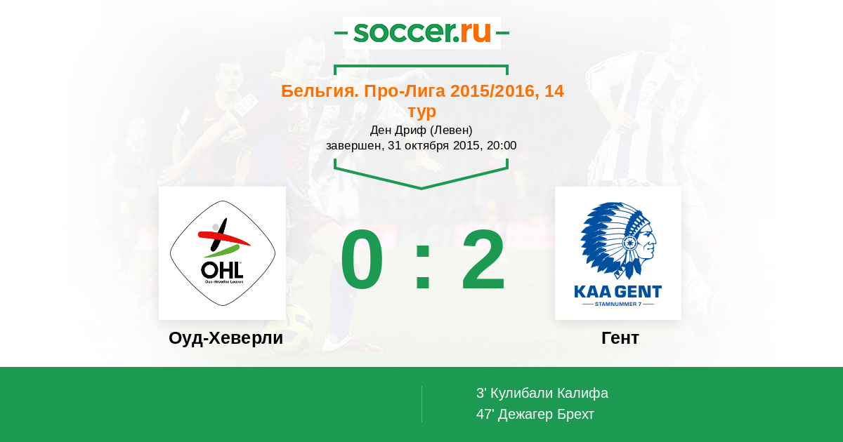 Оуд-Хеверли - Гент: обзор матча 31 октября 2015