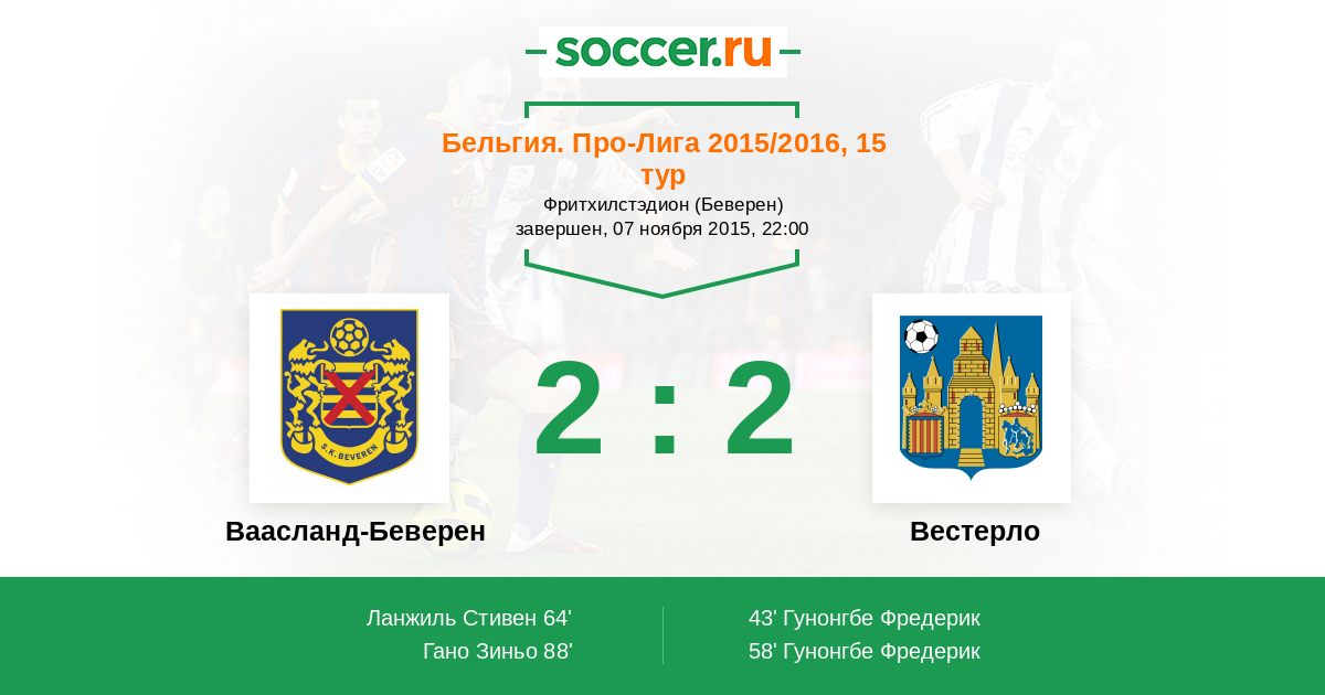 Ваасланд-Беверен - Вестерло: обзор матча 7 ноября 2015