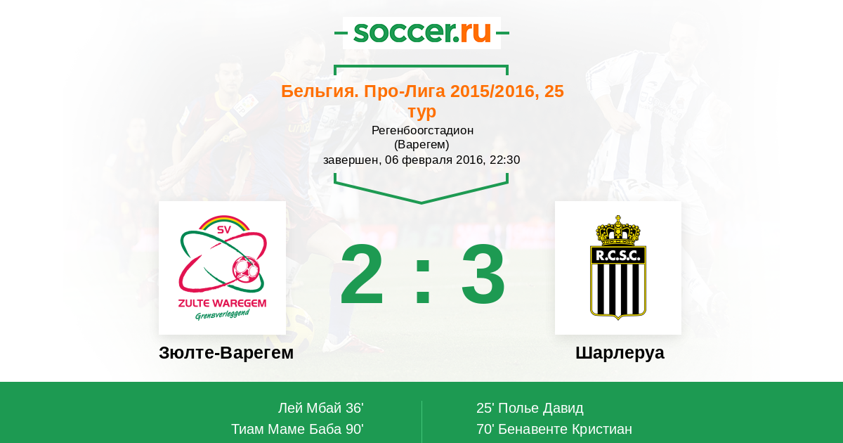 Зюлте-Варегем - Шарлеруа: обзор матча 6 февраля 2016