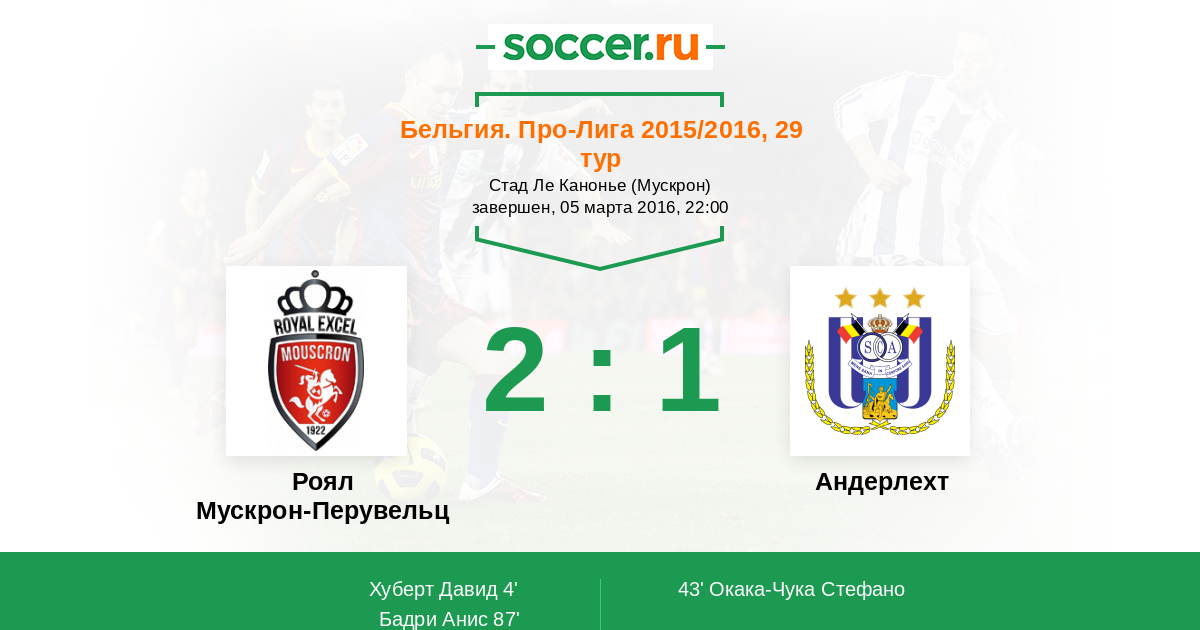 Роял Мускрон-Перувельц - Андерлехт: обзор матча 5 марта 2016