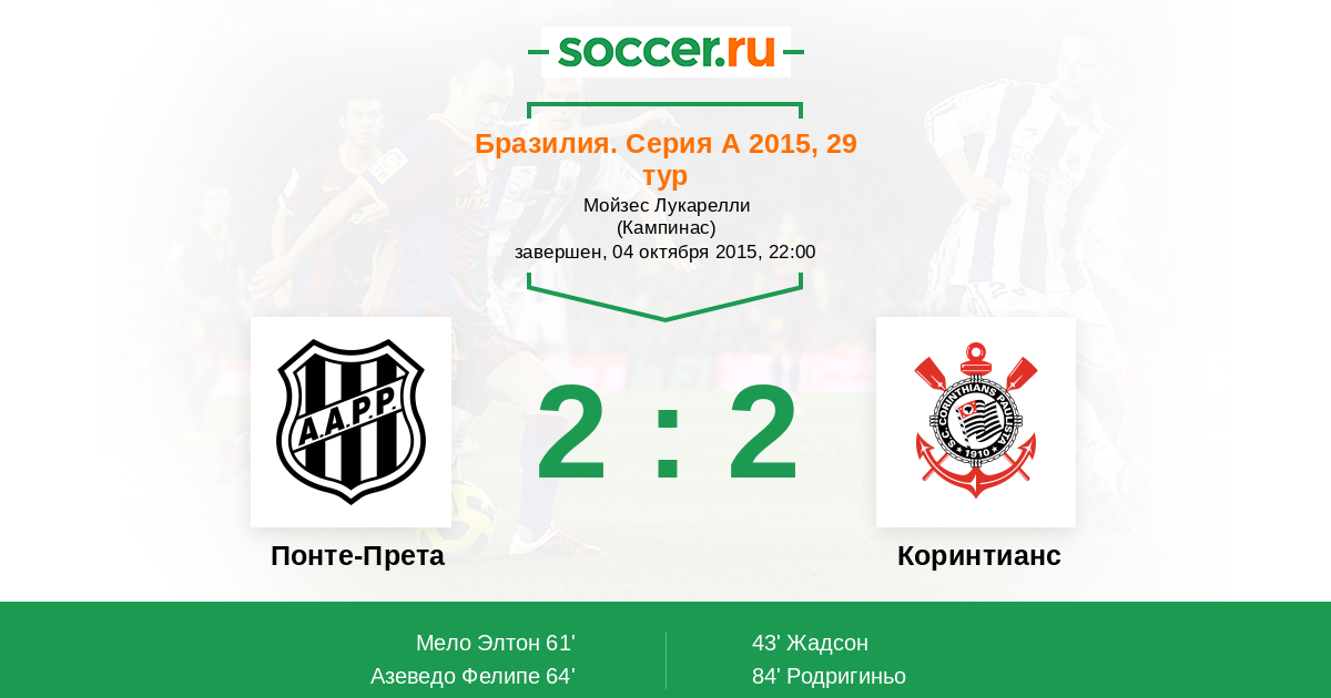 Понте-Прета - Коринтианс: обзор матча 4 октября 2015