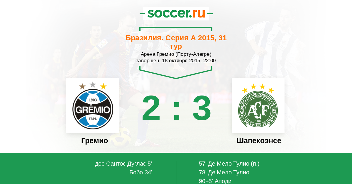 Гремио - Шапекоэнсе: обзор матча 18 октября 2015