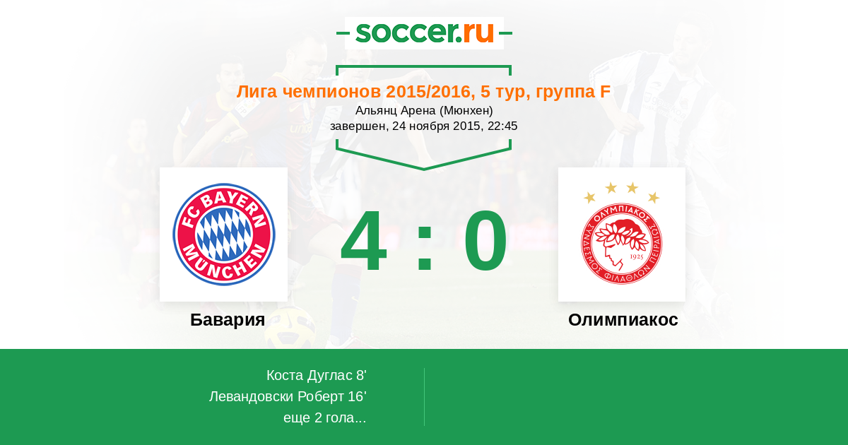 Бавария - Олимпиакос: обзор матча 24 ноября 2015