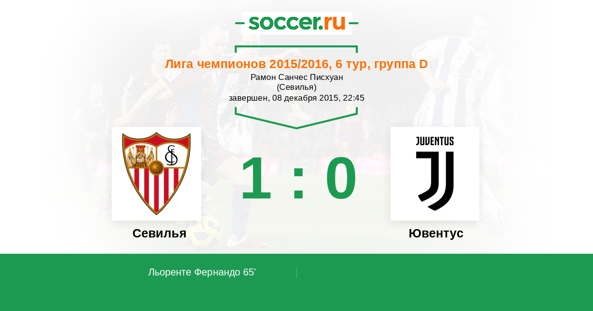 Добрый вечер всем любителям футбола! Сегодня будут играться матчи в заключительном туре группового этапа Лиги Чемпионов. Сайт Soccer.ru проведёт прямую текстовую онлайн трансляцию матча, где "Севилья"(Испания) будет принимать на своём поле "Ювентус"(Италия). Трансляцию матча для Вас проведёт Старчеус Сергей.