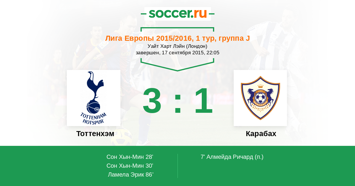 Тоттенхэм - Карабах: обзор матча 17 сентября 2015