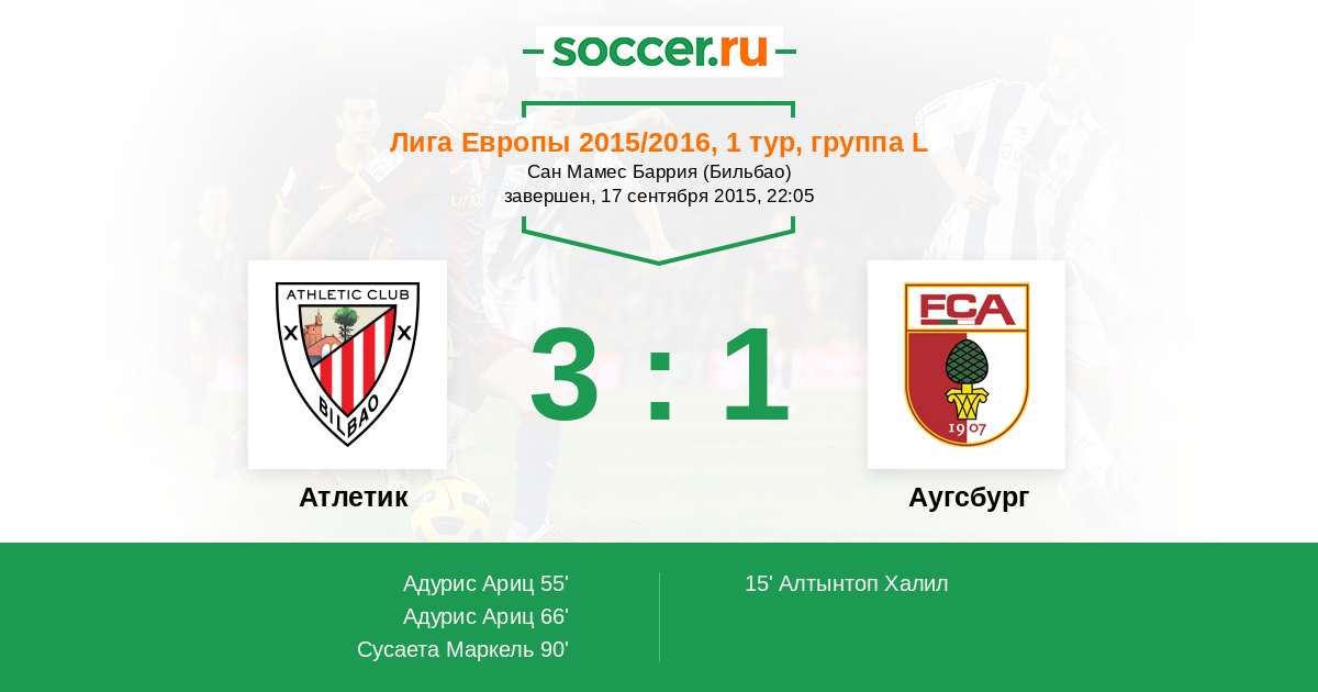 Атлетик - Аугсбург: обзор матча 17 сентября 2015