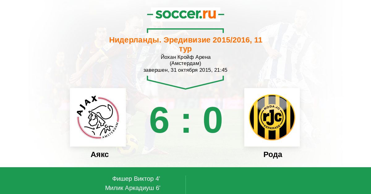 Аякс - Рода: обзор матча 31 октября 2015