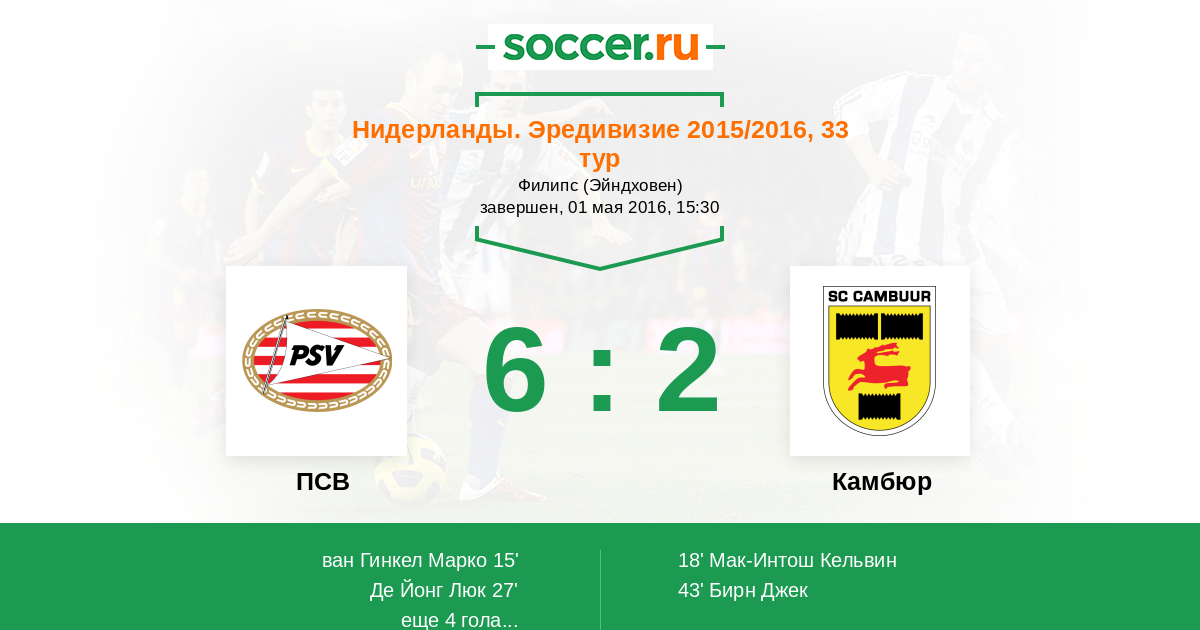ПСВ - Камбюр: обзор матча 1 мая 2016