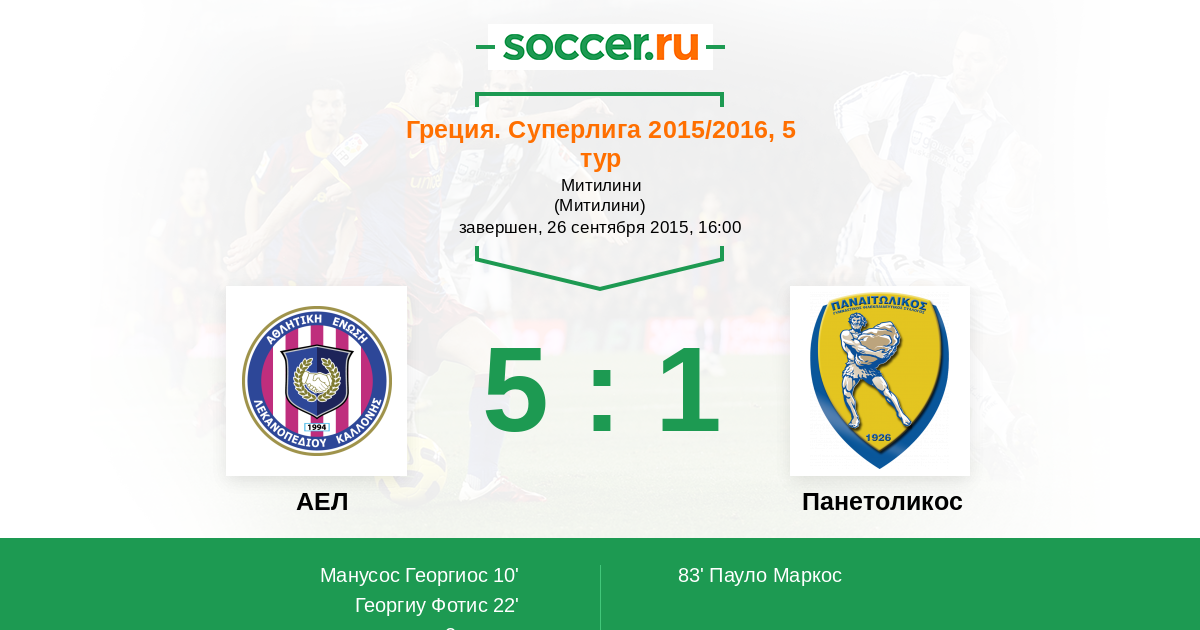 АЕЛ - Панетоликос: обзор матча 26 сентября 2015