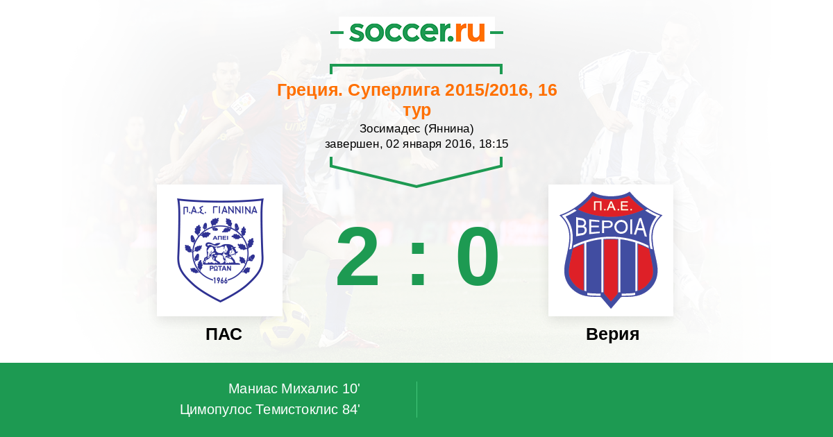 ПАС - Верия: обзор матча 2 января 2016