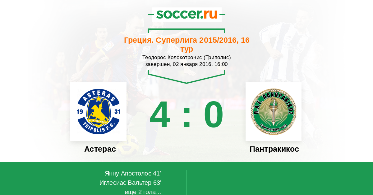 Астерас - Пантракикос: обзор матча 2 января 2016