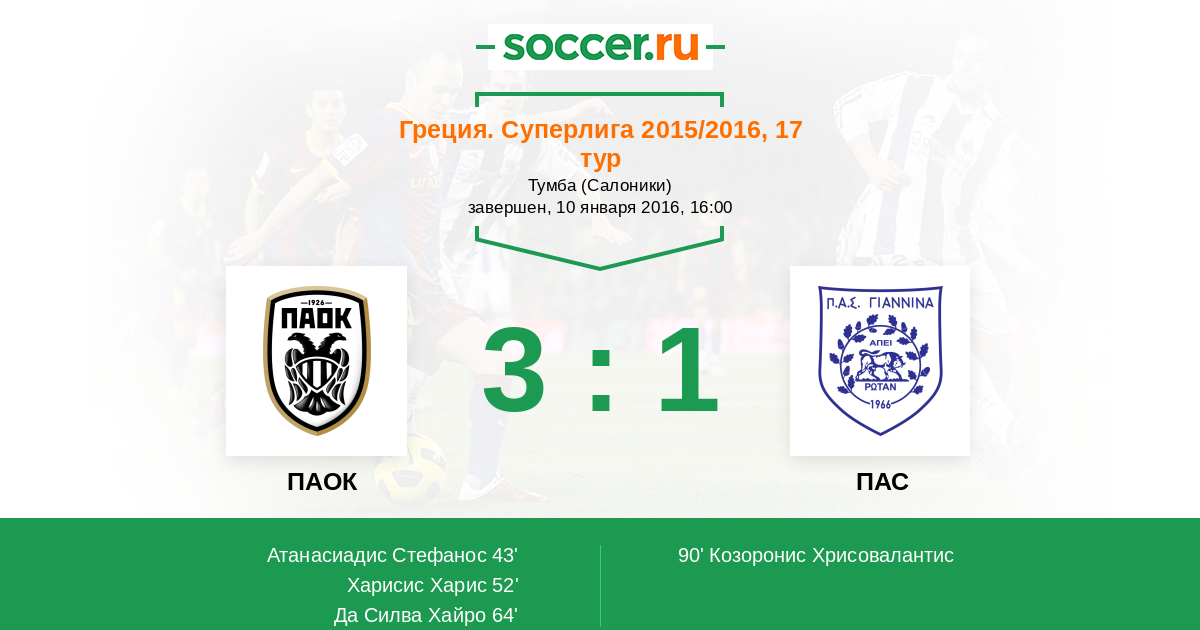 ПАОК - ПАС: обзор матча 10 января 2016