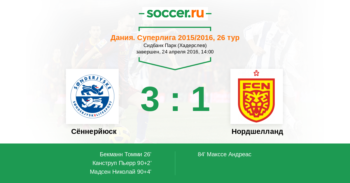 Сённерйюск - Нордшелланд: обзор матча 24 апреля 2016