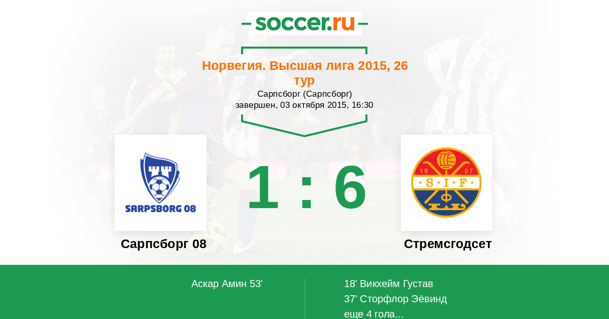 Сарпсборг 08 - Стремсгодсет: обзор матча 3 октября 2015