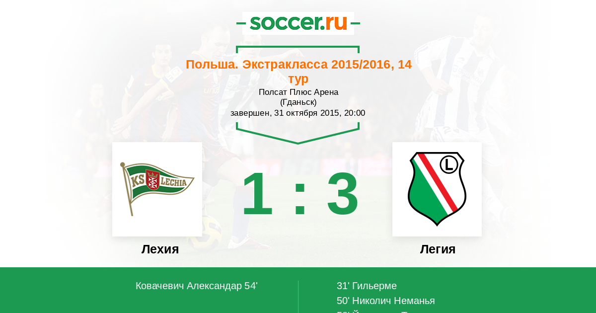Лехия - Легия: обзор матча 31 октября 2015