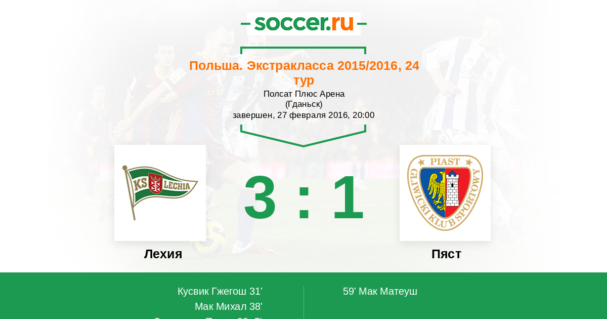 Лехия - Пяст: обзор матча 27 февраля 2016