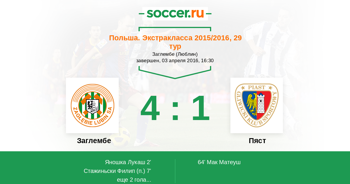 Заглембе - Пяст: обзор матча 3 апреля 2016