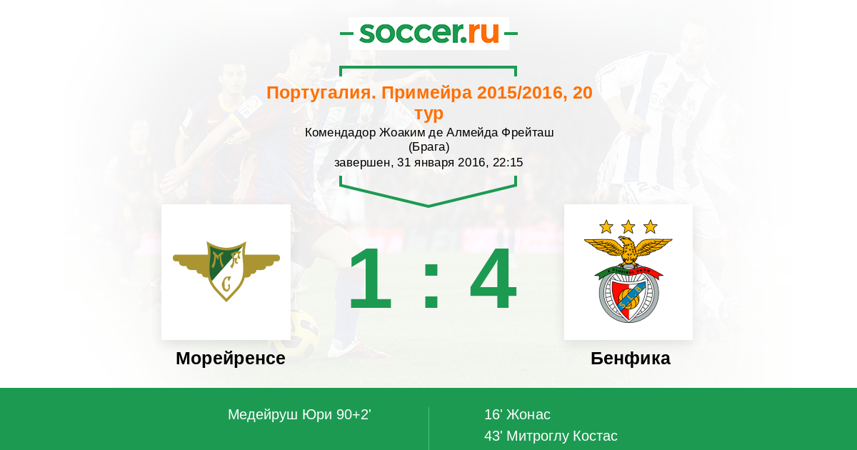 Морейренcе - Бенфика: обзор матча 31 января 2016