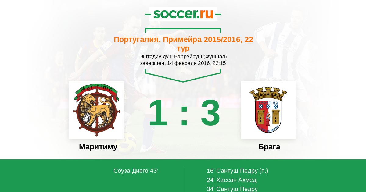 Маритиму - Брага: обзор матча 14 февраля 2016