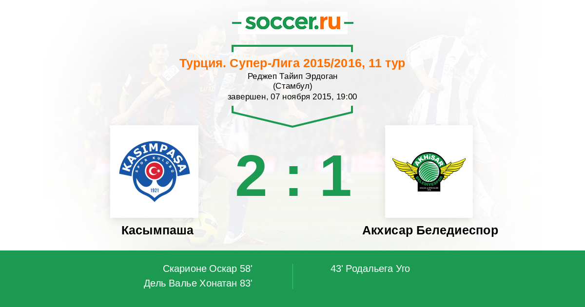 Касымпаша - Акхисар Беледиеспор: обзор матча 7 ноября 2015