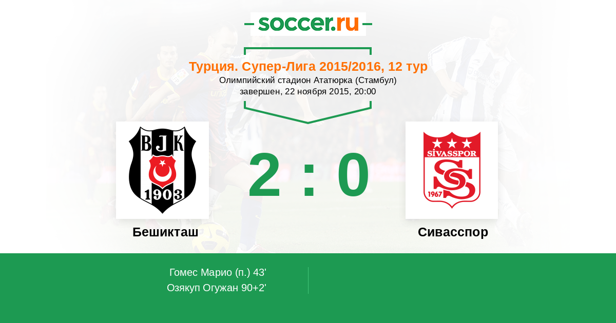 Бешикташ - Сивасспор: обзор матча 22 ноября 2015