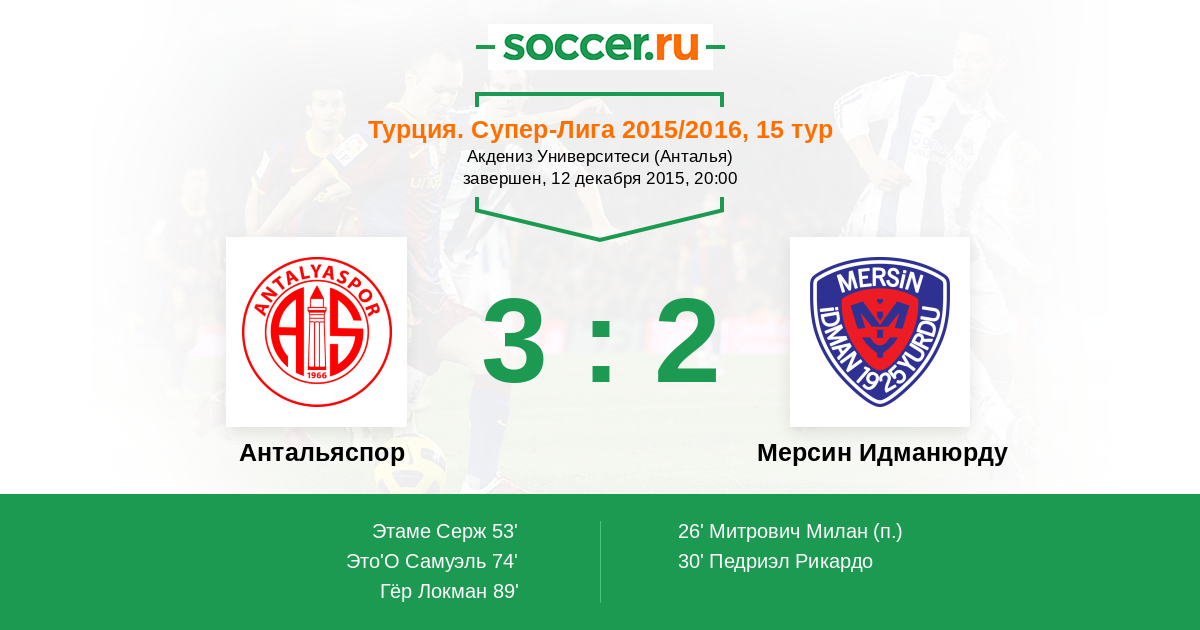 Антальяспор - Мерсин Идманюрду: обзор матча 12 декабря 2015
