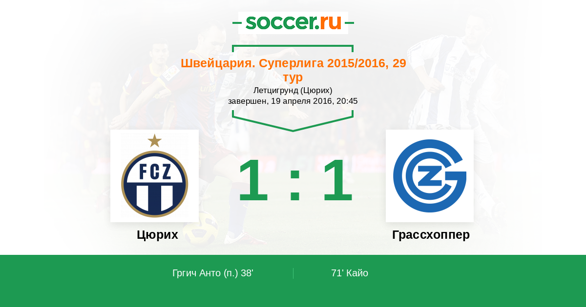 Цюрих - Грассхоппер: обзор матча 19 апреля 2016