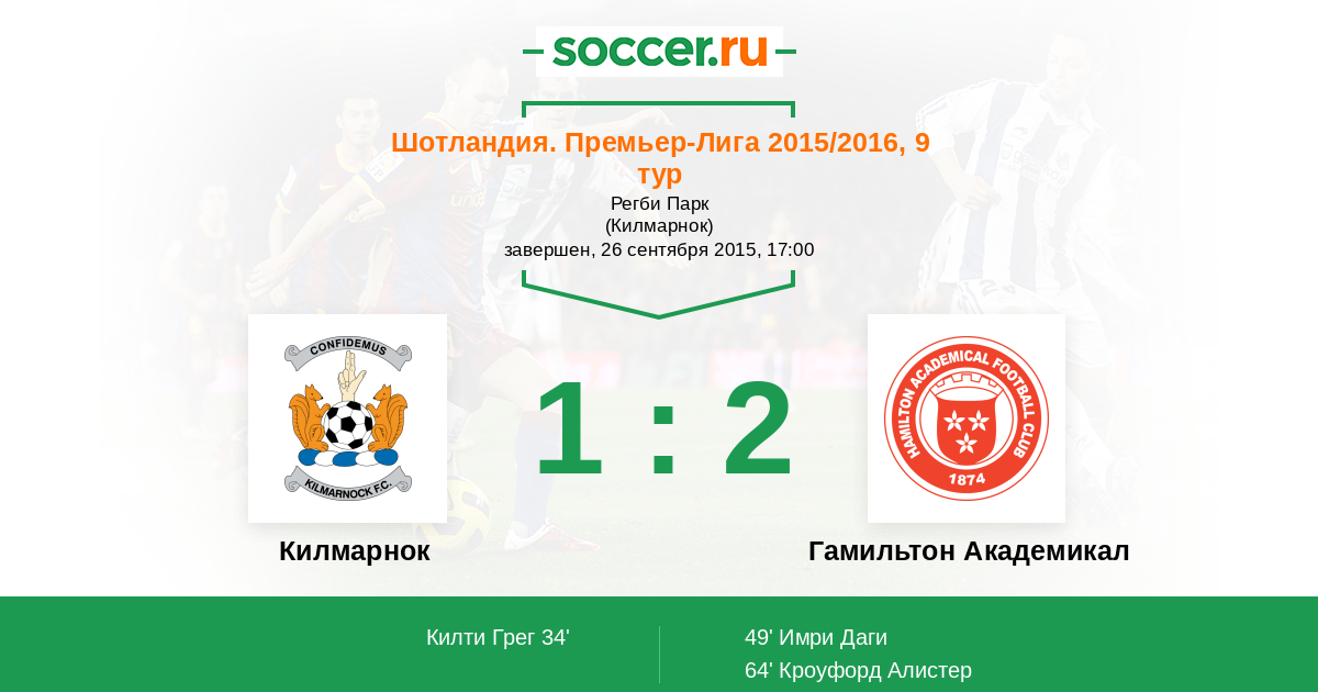 Килмарнок - Гамильтон Академикал: обзор матча 26 сентября 2015