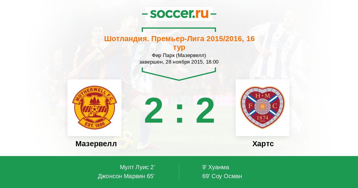Мазервелл - Хартс: обзор матча 28 ноября 2015