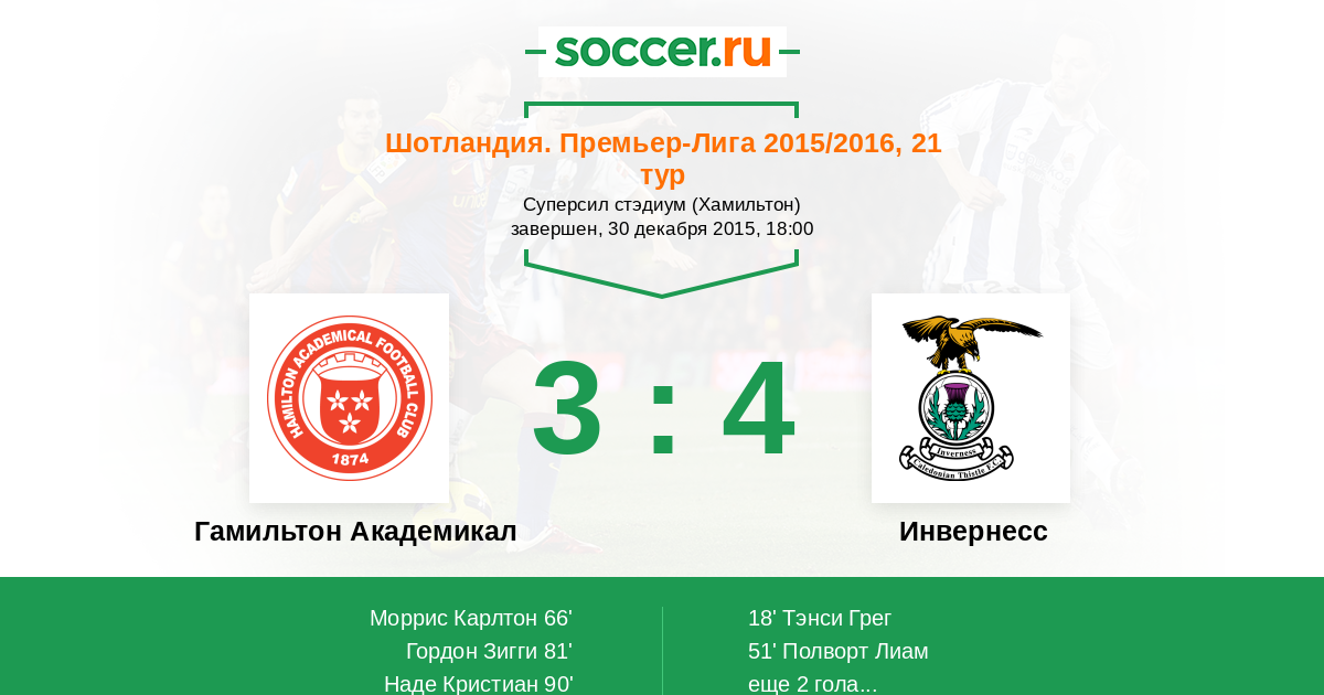 Гамильтон Академикал - Инвернесс: обзор матча 30 декабря 2015
