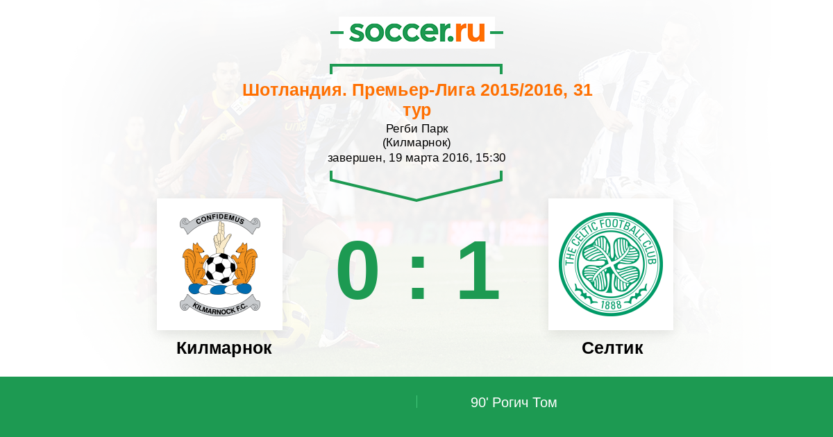 Килмарнок - Селтик: обзор матча 19 марта 2016