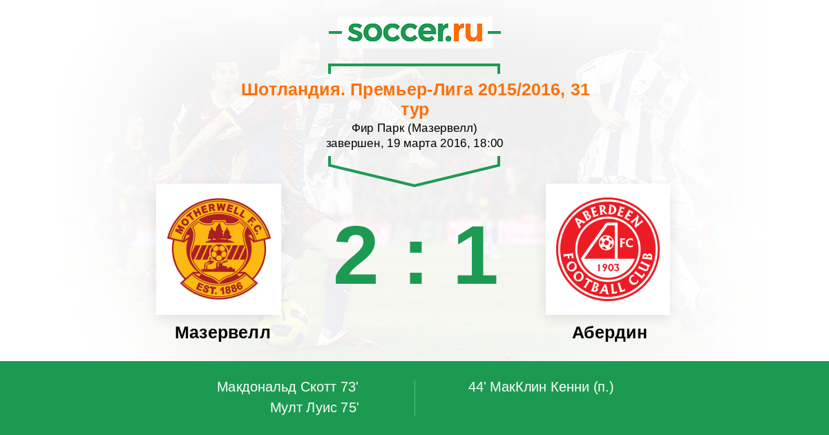 Мазервелл - Абердин: обзор матча 19 марта 2016