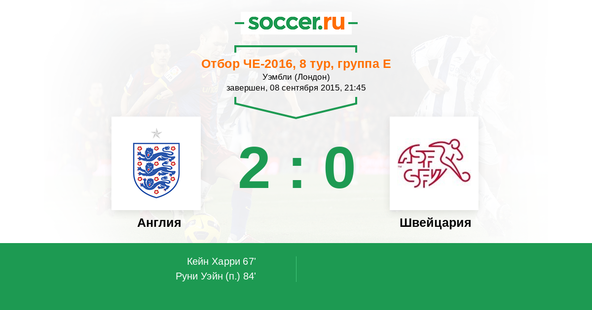 Англия - Швейцария: обзор матча 8 сентября 2015