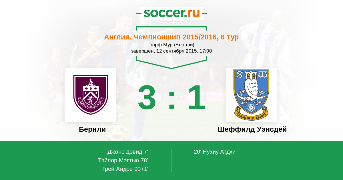 Бернли - Шеффилд Уэнсдей: обзор матча 12 сентября 2015