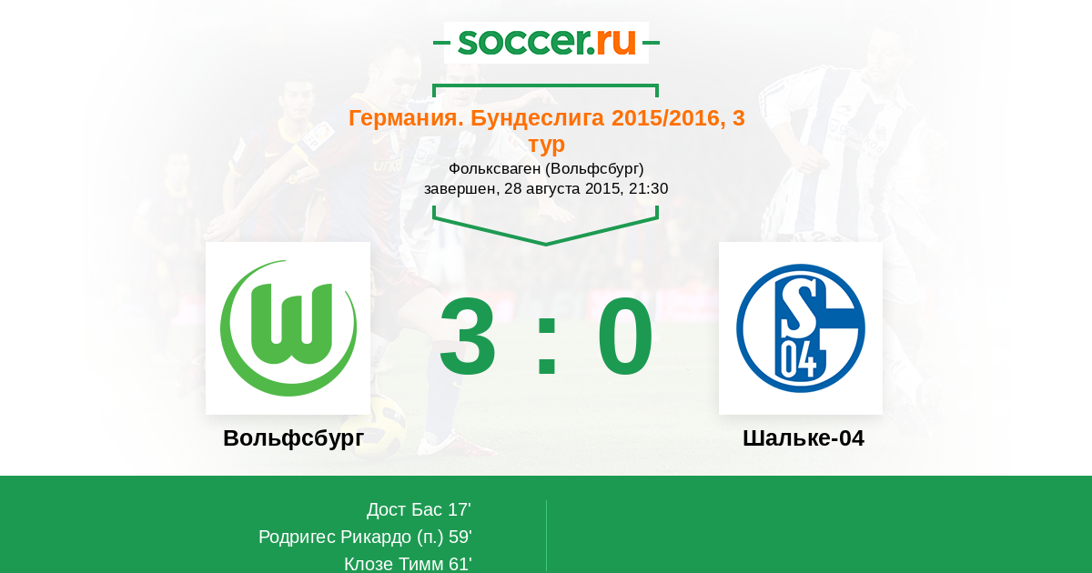 Вольфсбург - Шальке-04: обзор матча 28 августа 2015