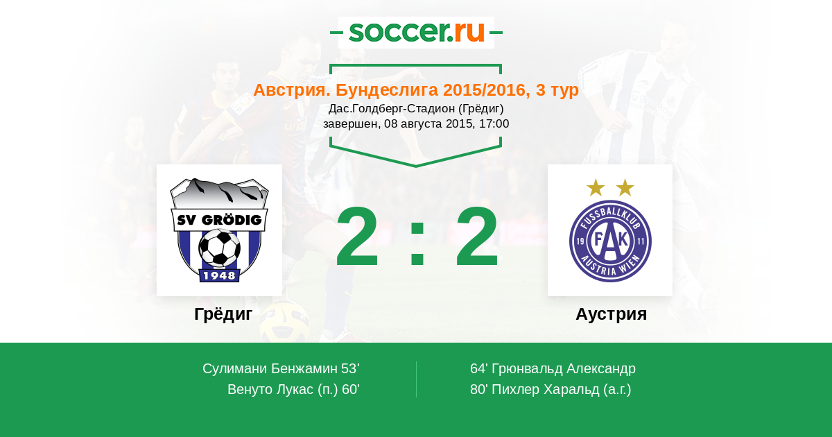 Грёдиг - Аустрия: обзор матча 8 августа 2015