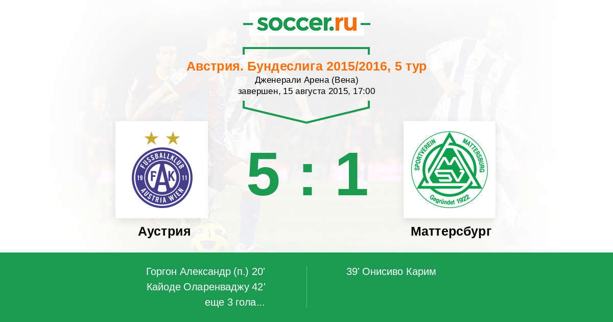 Аустрия - Маттерсбург: обзор матча 15 августа 2015