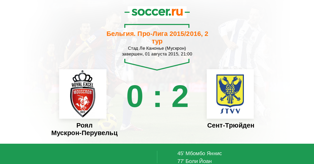 Роял Мускрон-Перувельц - Сент-Трюйден: обзор матча 1 августа 2015