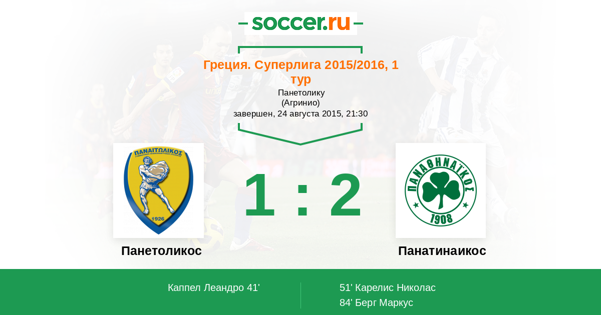 Панетоликос - Панатинаикос: обзор матча 24 августа 2015
