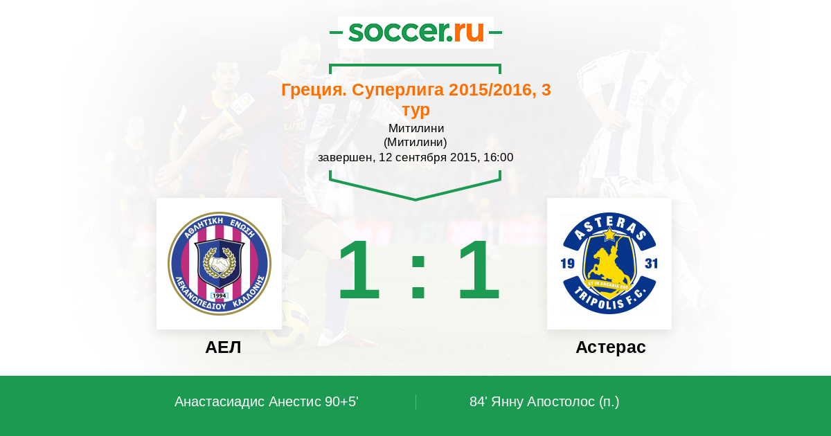 АЕЛ - Астерас: обзор матча 12 сентября 2015