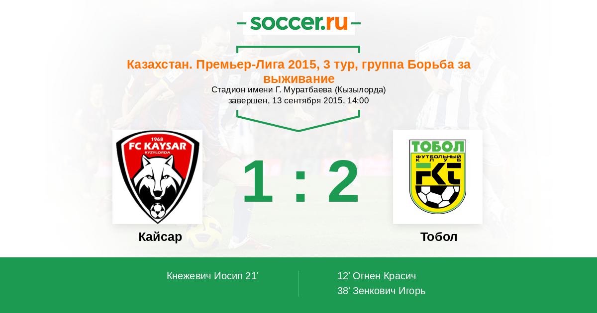 Кайсар - Тобол: обзор матча 13 сентября 2015