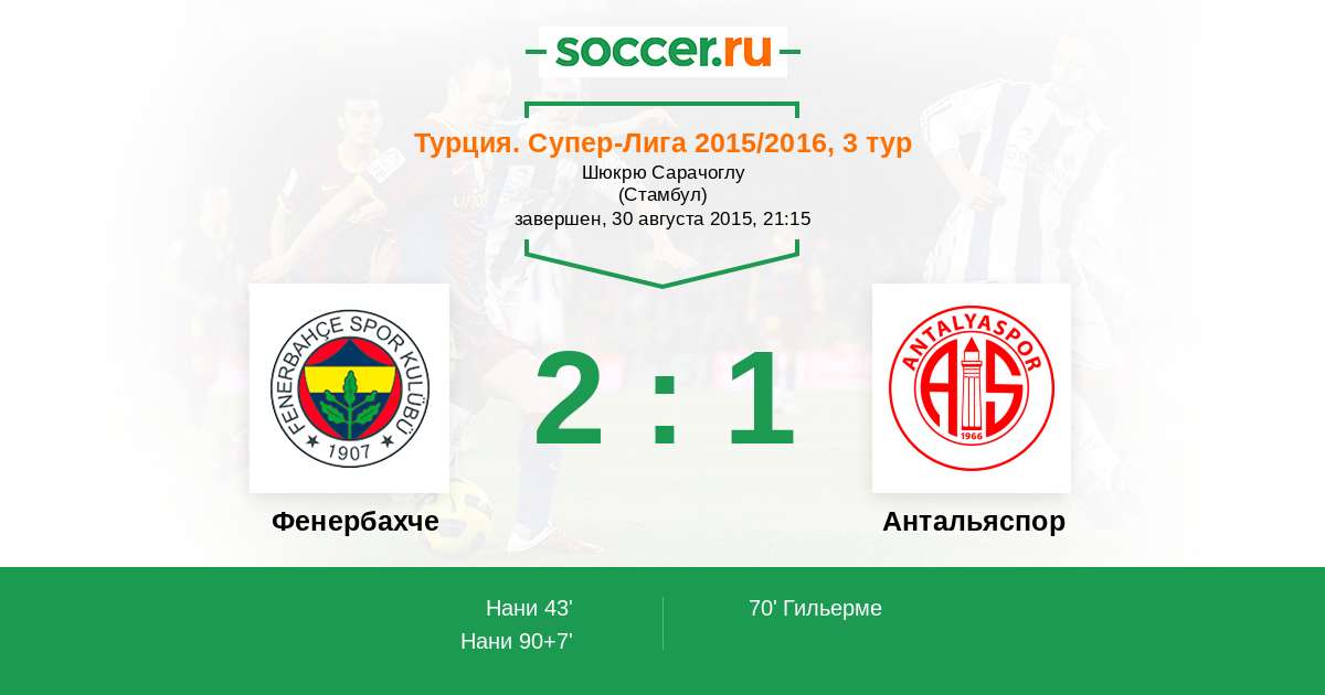 Фенербахче - Антальяспор: обзор матча 30 августа 2015