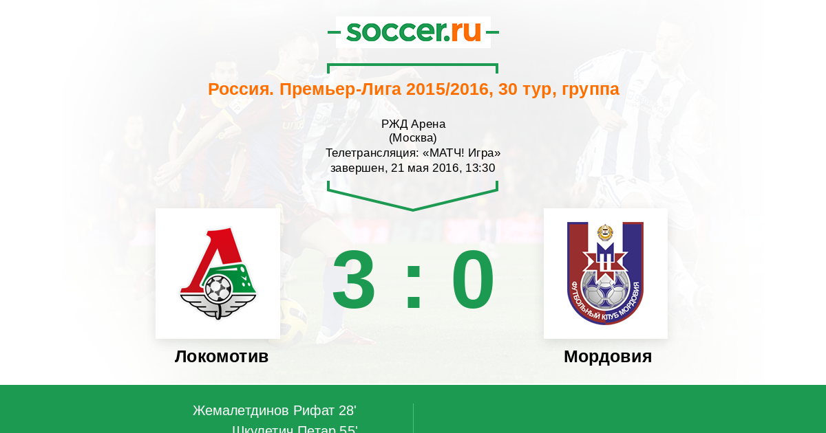 Доброго времени суток, уважаемые любители футбола! Сегодня в рамках заключительного тура чемпионата России в гости к московскому "Локомотиву" пожалует саранская "Мордовия". Если для "железнодорожников" результат последней встречи никак не повлияет на итоговое место в турнирной таблице (шестое место гарантировано "Локомотиву" при любом исходе сегодняшнего матча), то для подопечных Марата Мустафина решается вопрос, где его команда будет выступать в следующем сезоне, в Премьер-Лиге или в ФНЛ. Для сохранения прописки в элитном дивизионе "Мордовии" сегодня необходимо побеждать "железнодорожников" и, кроме этого, еще надеяться на осечки конкурентов в борьбе за выживание. В первом круге подопечные Игоря Черевченко в гостях добились минимальной победы над саранчанами, единственный гол в том матче на свой счет записал Петар Шкулетич. Посмотрим, сможет ли сегодня "Мордовия" добиться так нужной ей для спасения победы. Вместе с вами следить за событиями этого матча на soccer.ru будет Дмитрий Отмахов.